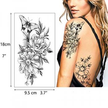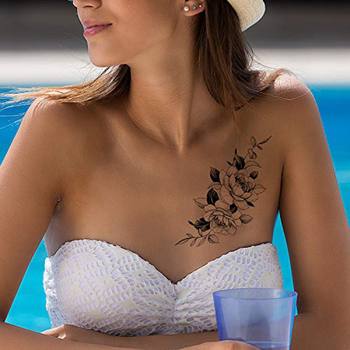 10 Vellen Big Black Rose Pioen Bloem Meisjes Tijdelijke Tatoeages Voor Vrouwen Waterdichte Tattoo Stickers 3D Blossom Lady Schouder