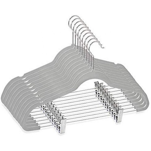 ไม้แขวนเสื้อกางเกงกันลื่นกำมะหยี่สีเทา10ชิ้น,ตะขอหมุนประหยัดพื้นที่พร้อมคลิปโลหะปรับได้สำหรับเสื้อผ้าชุดกางเกง